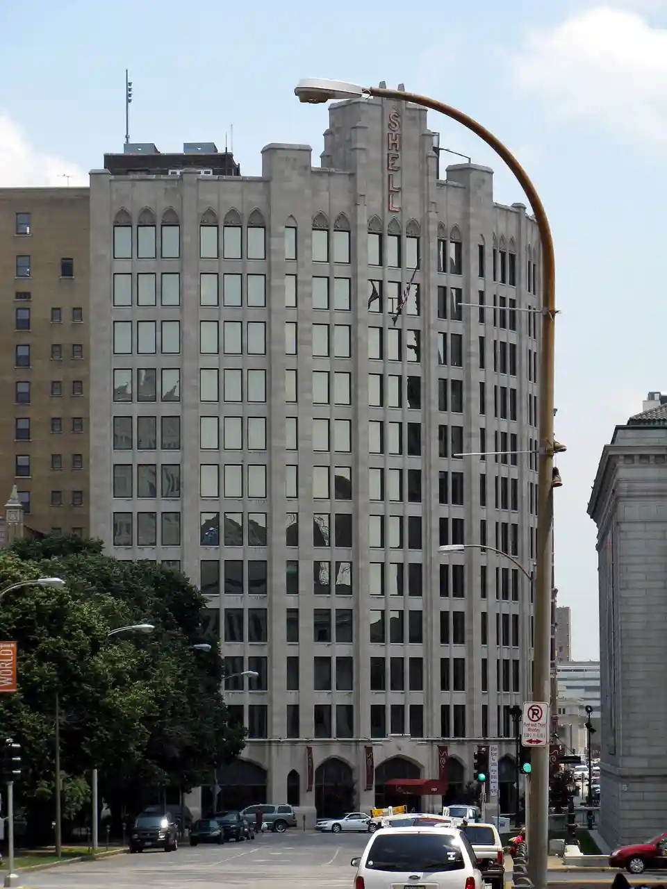 The Shell Building is an office building in downtown St. Louis, Missouri. Located at the corner of Locust Street and 13th Street, known as Shell Corner, the 13-story, , building was the original home of the Shell Oil Company in the United States. The building has a rounded footprint, following the curve of Locust onto North 13th Street. Read more on Wikipedia