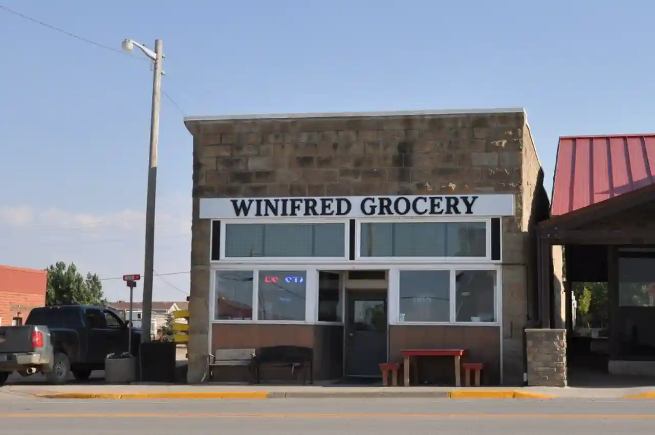 Stafford's Grocery, at 201 Main St. in Winifred, Montana, was built in 1914. It was listed on the National Register of Historic Places in 2016. Read more on Wikipedia