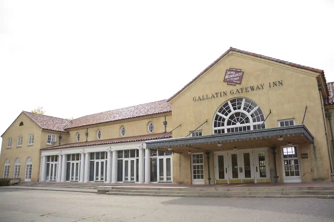 The Gallatin Gateway Inn is a Spanish-stucco style railroad hotel at Gallatin Gateway, Montana. The hotel is one of the "Historic Inns of America." The Gallatin Gateway Inn was opened on June 18, 1927. Constructed and operated by The Milwaukee Road (Chicago, Milwaukee, St. Paul and Pacific Railroad), the luxury hotel was reached by electrified railroad branch line that connected to the Milwaukee's main line at Three Forks, Montana. It was among the first hotels in Montana with telephones in every room, and offered travelers access to Yellowstone National Park. Park buses took passengers from the hotel to the park. Read more on Wikipedia
