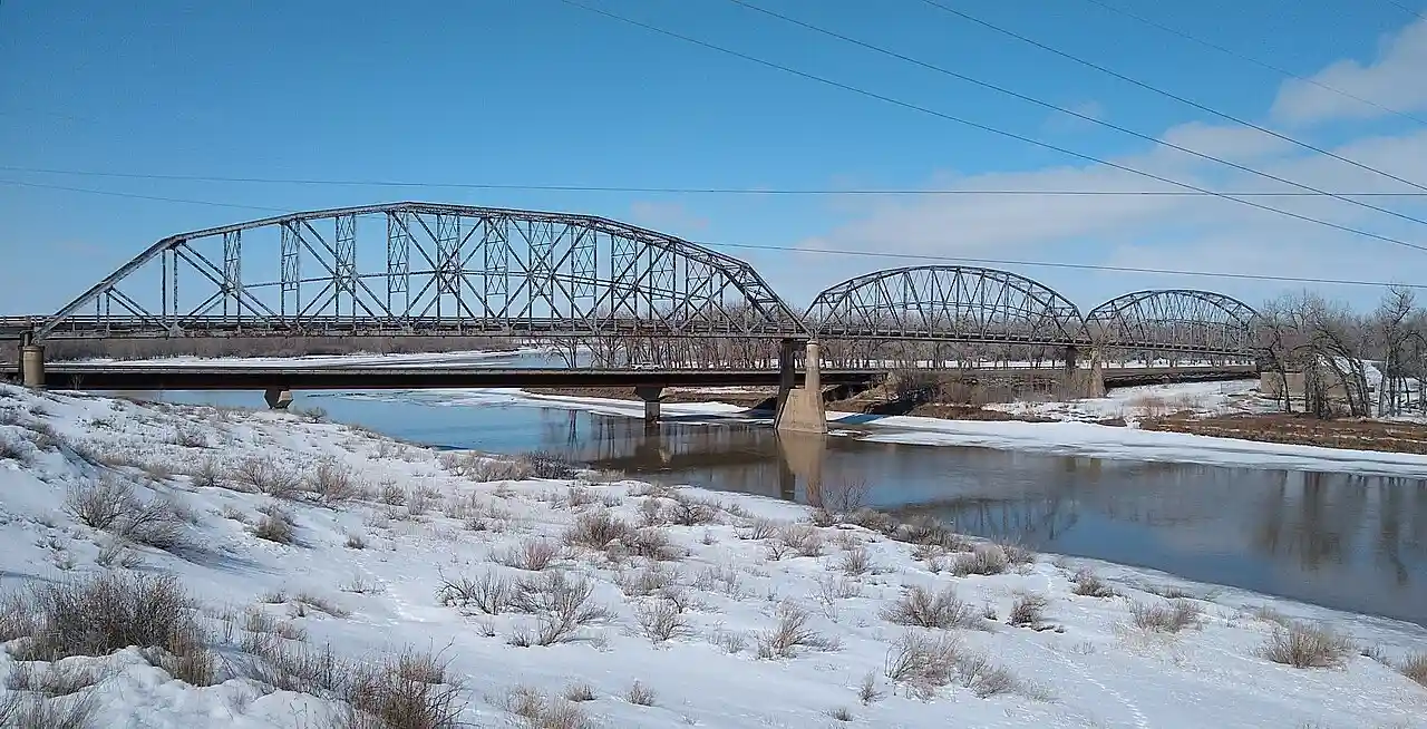 The Lewis and Clark Bridge is a historic bridge in Wolf Point, Montana, which once carried Montana Highway 13 across the Missouri River between McCone and Roosevelt counties. It is also known as Wolf Point Bridge, Missouri River Bridge, or Site No. 24RV438. The bridge is a five-span Pennsylvania through truss; its longest span is the longest through truss span in the state at . Completed in 1930 by the Missouri Valley Bridge and Iron Company, the bridge was the first bridge across the Missouri River at Wolf Point and the only bridge along the river for a stretch. The bridge's opening ceremony, which took place on July 9, drew over 10,000 visitors and included five bands and a fireworks display. After its completion, the bridge became a popular tourist attraction for motorists in northeastern Montana and a point of civic pride for Wolf Point's residents.. Read more on Wikipedia