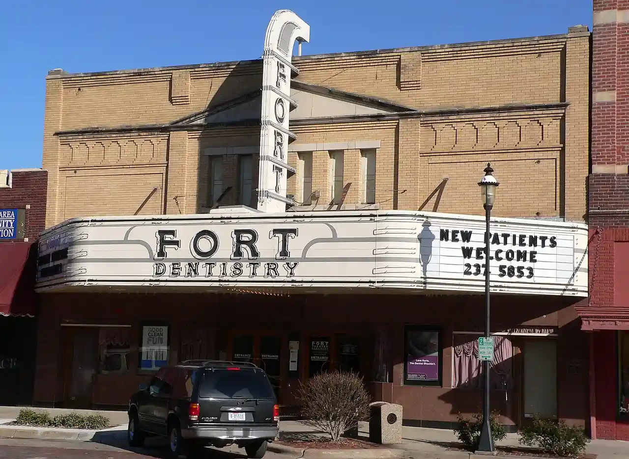 Fort Theater is a historic two-story building in Kearney, Nebraska. It was built in 1914 as The Empress by F.G. Keens, and designed in the Classical Revival style. With After it was partly destroyed in 1940, it was purchased by Don and George Monroe, who added a marquee to the facade; it was designed in the Moderne style by architect Edward J. Sessinghaus. Inside, there are murals by Joyce Ballantyne. The building has been listed on the National Register of Historic Places since July 12, 2006. Read more on Wikipedia
