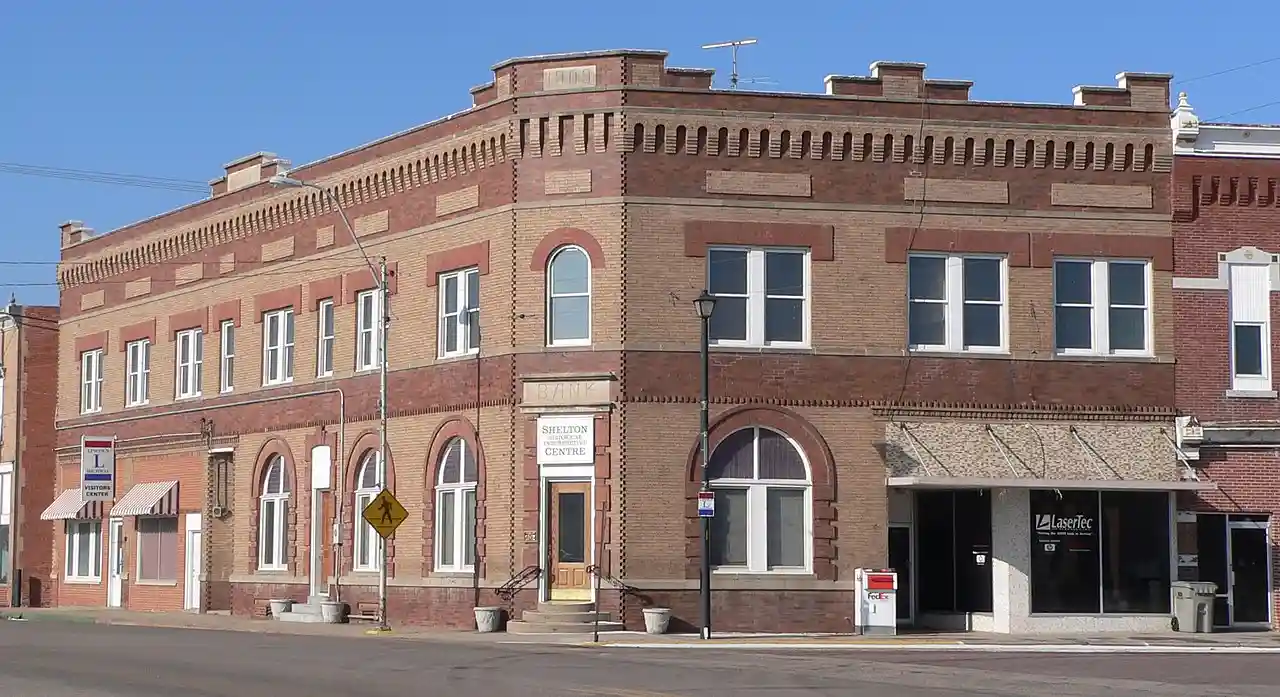 The Meisner Bank Building is a historic two-story building in Shelton, Nebraska. It was built in 1908-1910 for the Meisner Bank founded by George Meisner in 1894. With The building designed in the Renaissance Revival style. It has been listed on the National Register of Historic Places since March 25, 1999. Read more on Wikipedia