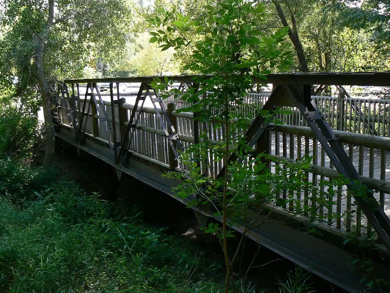 The Mynard Road Bridge, now located near Ashland, Nebraska, is a historic Warren truss leg bedstead bridge that was built in 1900. It was probably built by J.R. Sheeley and Company, of Lincoln, Nebraska and was listed on the National Register of Historic Places in 1992. The Mynard Road Bridge was the longest of its engineering type remaining in the state of Nebraska when the historic inventory was done in 1992, and was still used for vehicular traffic at that time. The bridge was originally situated on the Maynard Road and was built to span an unnamed stream, southeast of Louisville, Nebraska. In 2000, the bridge was relocated to be used as a pedestrian bridge at the Lee G. Simmons Conservation Park and Wildlife Safari. Read more on Wikipedia