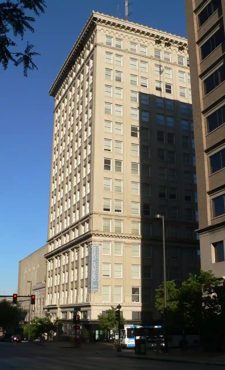 City National Bank Building, also known as the Orpheum Tower, is a 220 ft, 16 story, tower in Downtown Omaha, Nebraska. When built in 1910, it was the tallest building in Omaha. It remained the tallest building until 1912 when the Woodmen of the World was completed. It was added to the NRHP in 1973. The building is now known as the Orpheum Tower and is a 132-unit apartment building. Read more on Wikipedia