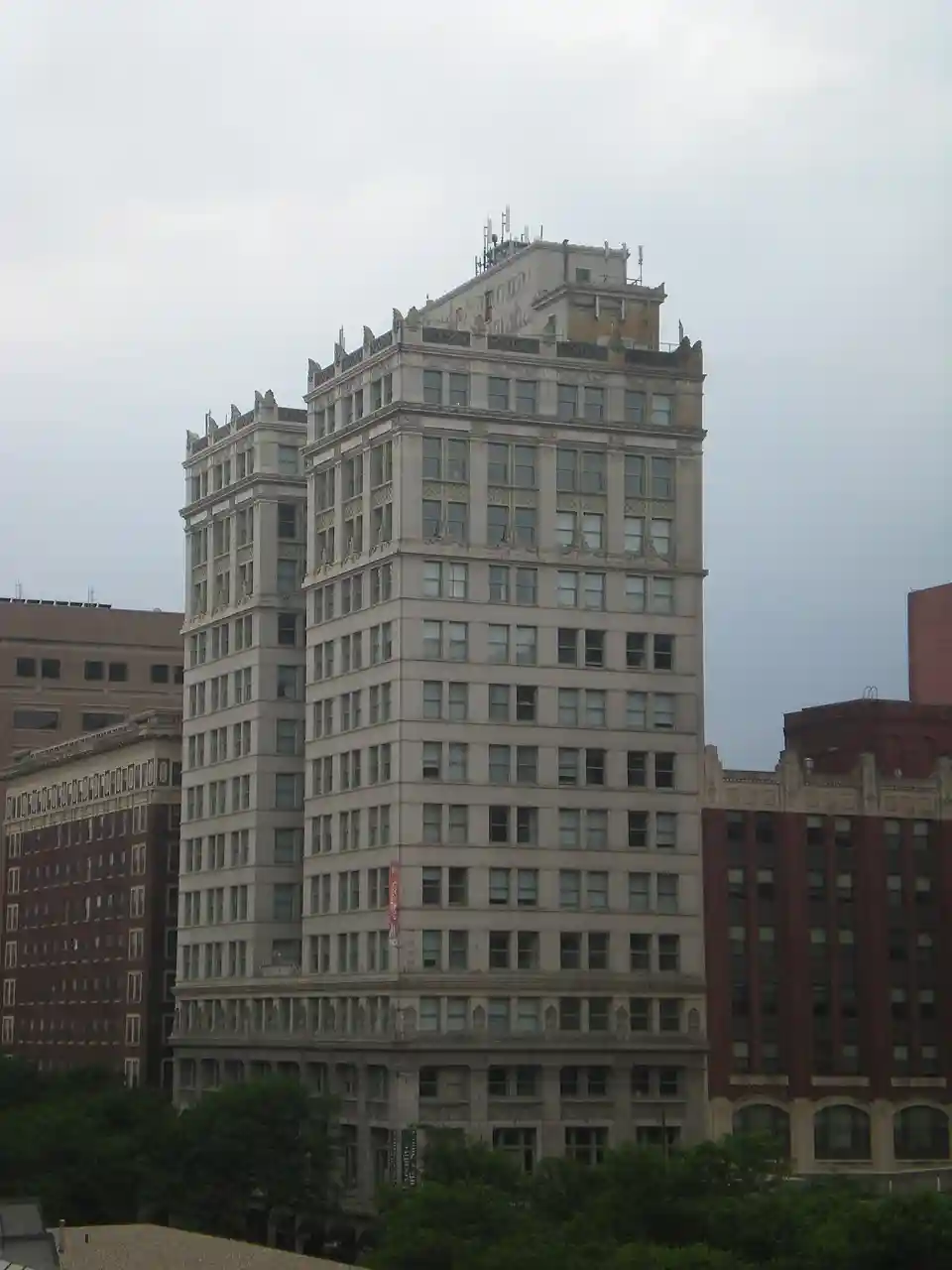 The First National Bank Building is a U-shaped, fourteen-story, historic steel structure building located on the corner of 16th and Farnam street in Downtown Omaha, Nebraska. The building was constructed in 1917. It was the original building for the First National Bank as well as the first high-rise building built in Omaha. At 210 feet (64 m), it is the 17th tallest building in the city and its unique structure makes it a landmark in downtown Omaha."Farnam 1600 Building @ Emporis.com", Emporis.com. Retrieved 11/25/09. Read more on Wikipedia