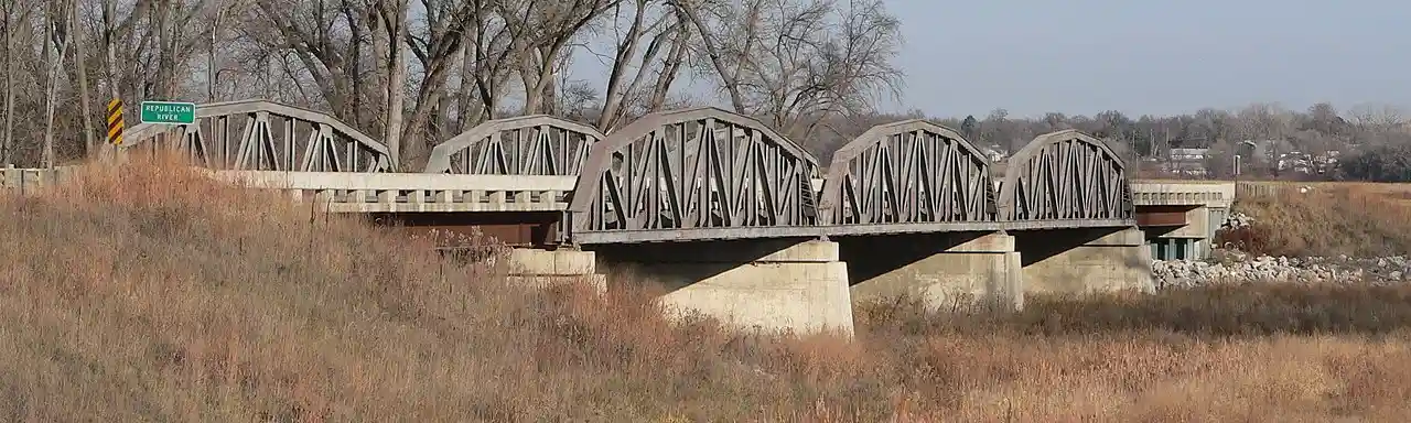 Franklin Bridge is a bridge in Franklin County, Nebraska. The road bridge was built over the Republican River in 1932 and features Warren pony trusses. In 1935, a flood swept away one truss and one approach span. The bridge was listed on the National Register of Historic Places in 1992, and was delisted in 2020. Read more on Wikipedia