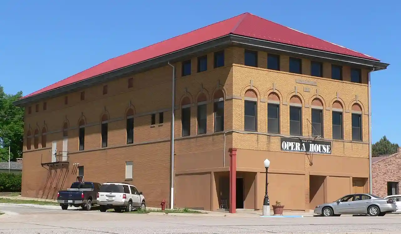 The Anna C. Diller Opera House is a historic three-story building in Diller, Nebraska. It was built as a two-part commercial block in 1912 thanks to a donation by Anne C. Diller, whose late husband William H. Oilier had co-founded Diller. With Inside, there is a 42 feet wide by 67 feet long auditorium with a 20 feet wide by 14 feet high proscenium arch. The building has been listed on the National Register of Historic Places since July 6, 1988. Read more on Wikipedia