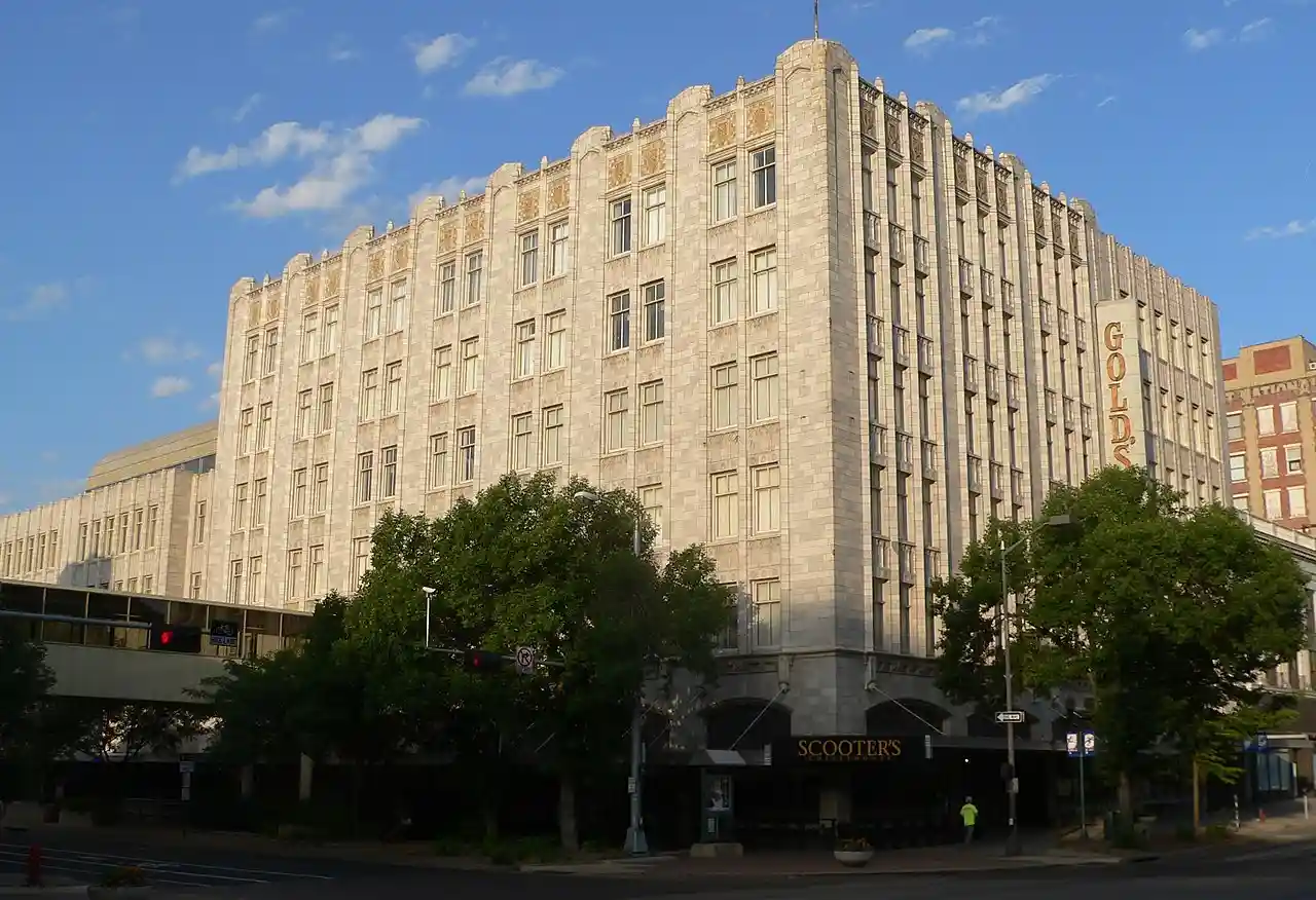 The Gold and Company Store Building is a historic commercial building in Lincoln, Nebraska. It was built in 1924 for the Gold and Company Store, co-founded by William Gold and later managed by his son Nathan, until its 1964 merger with J. L. Brandeis and Sons. The building was designed in the Gothic Revival and Art Deco styles. It has been listed on the National Register of Historic Places since October 19, 1982. Read more on Wikipedia