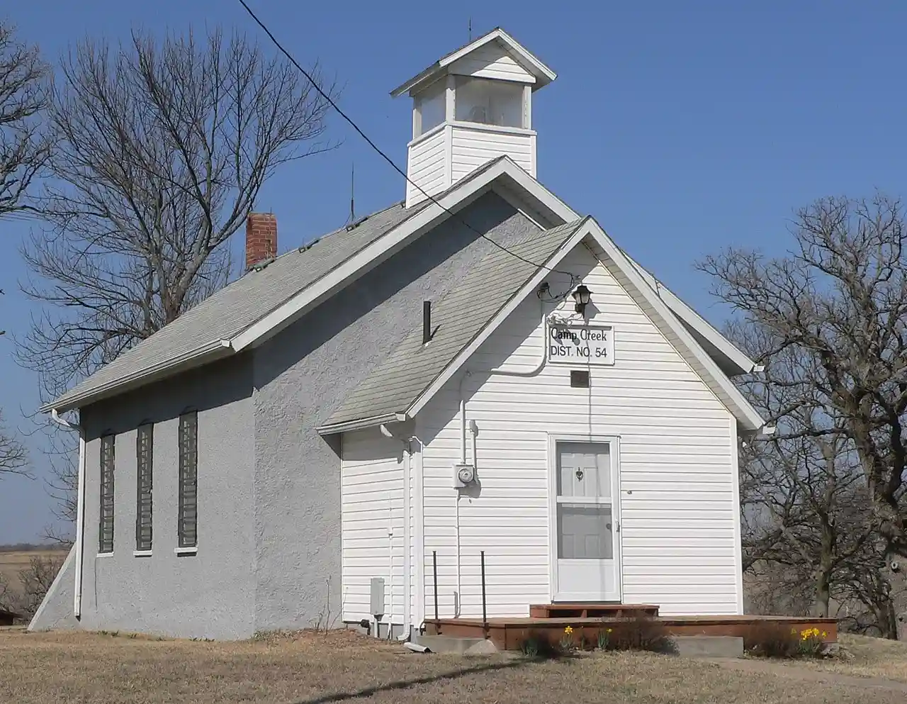 Camp Creek School, Otoe County District No. 54, in Otoe County, Nebraska near Nebraska City, Nebraska, was built in 1870–75. Its building is one of few surviving one-room schoolhouses in Nebraska. It was listed on the National Register of Historic Places in 1980. Read more on Wikipedia