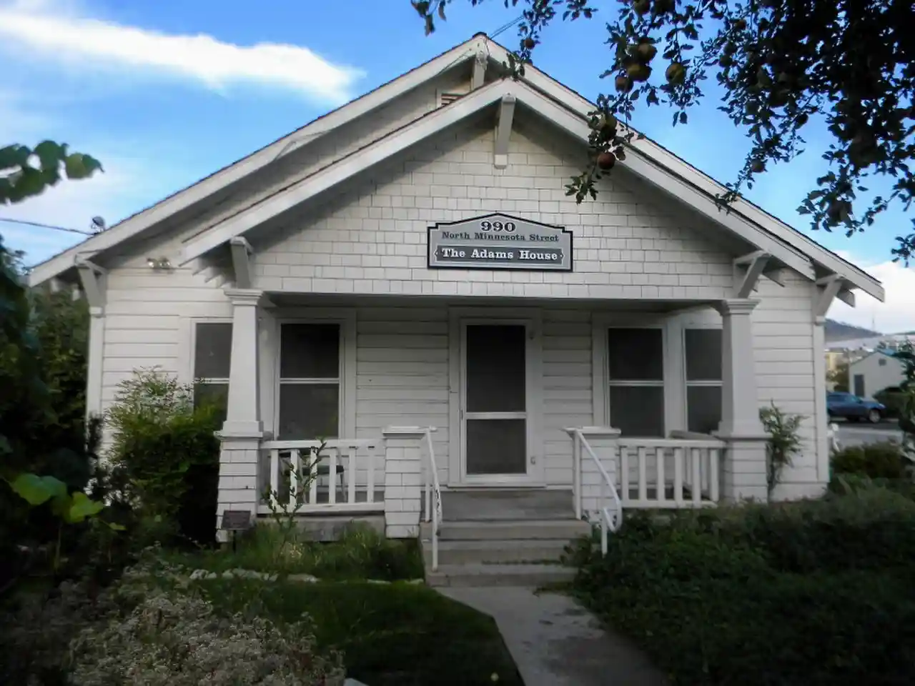 The Adams House in Carson City, Nevada, located at 990 N. Minnesota St., is a historic Bungalow/Craftsman-style house that was built during 1922–23 by DeWitt Adams, for his family. It is a "modest" building but a good example of a small bungalow with American Craftsman architecture. Its design is believed to have been a catalog plan. (but missing pages 8.1 to 8.5) and Read more on Wikipedia