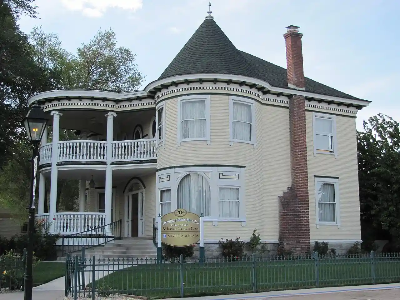 The Brougher Mansion, at 204 W. Spear St. in Carson City, Nevada, is a historic Queen Anne-style house that was built in 1903–1904. Also known as the Bath Mansion, it was listed on the National Register of Historic Places in 1904. Read more on Wikipedia