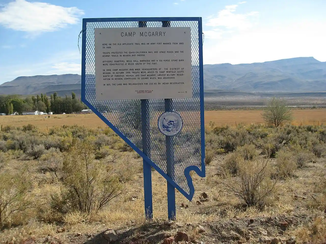 Camp McGarry was a U.S. military camp located in what is now the Summit Lake Indian Reservation in Humboldt County, Nevada. Read more on Wikipedia