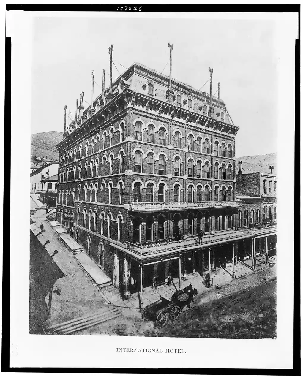 The International Hotel was a hotel located in Virginia City, Nevada. The hotel initially opened as a wooden one-story building in 1860. Two years later, a three-story brick addition was added to the hotel. The wooden portion was dismantled in 1863, and was used to construct a new International Hotel in Austin, Nevada, where it remained operational as of 2014. A four-story brick addition took the place of the wooden building. Read more on Wikipedia