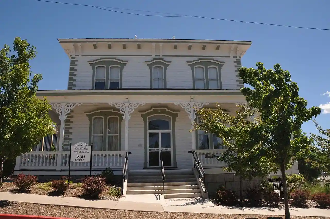 The Lake Mansion in Reno, Nevada, is a historic house that originally stood at the corner of Virginia and California Streets and is now located at 250 Court Street. It was built in 1877 by W.J. Marsh. It includes Late Victorian and Italianate architecture and was a home associated with Myron Lake, one of Reno's founders, who bought it in 1879. Read more on Wikipedia