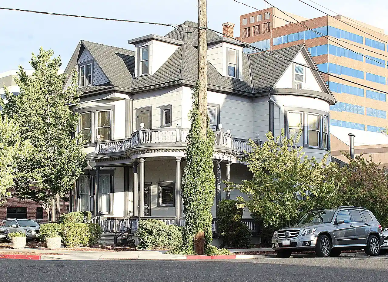 The Nortonia Boarding House, at 150 Ridge St. in Reno, Nevada, was built in c.1900-1904. In 1906 it was purchased by Norton, who changed it to a boarding house, and it was also extended then. It is primarily Queen Anne in style but includes elements of Colonial Revival architecture as well. It was listed on the National Register of Historic Places in 1983. It is notable as "one of the best" surviving Queen Anne houses in Reno. and Read more on Wikipedia