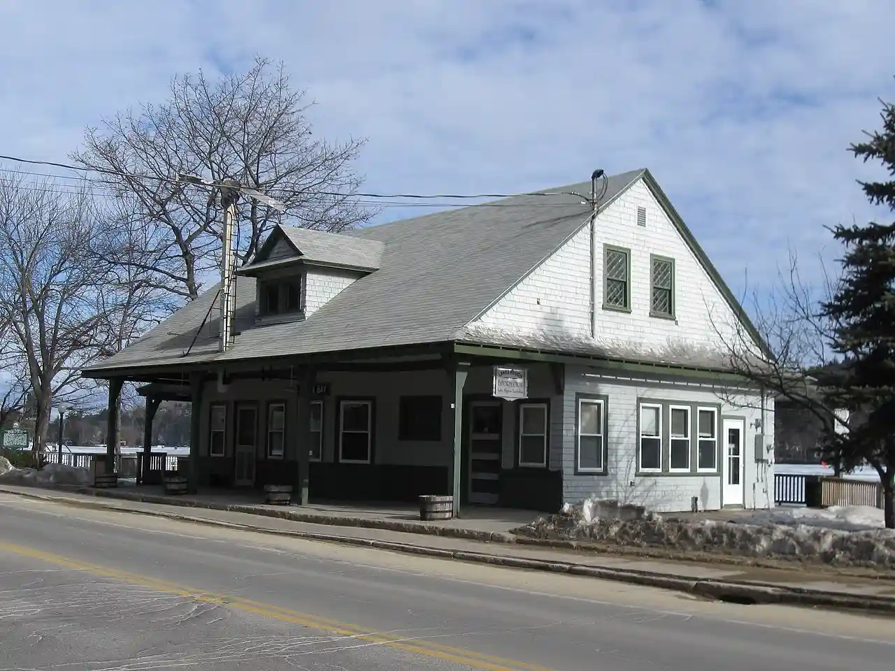 Alton Bay station is a former railroad station on New Hampshire Route 11 in Alton Bay, New Hampshire. Built in 1907 by the Boston and Maine Railroad, it is a surviving reminder of the importance of the railroad to the development of Alton Bay as a summer resort community. The building, now in use as a community center, was listed on the National Register of Historic Places in 1983 as Alton Bay Railroad Station. Read more on Wikipedia