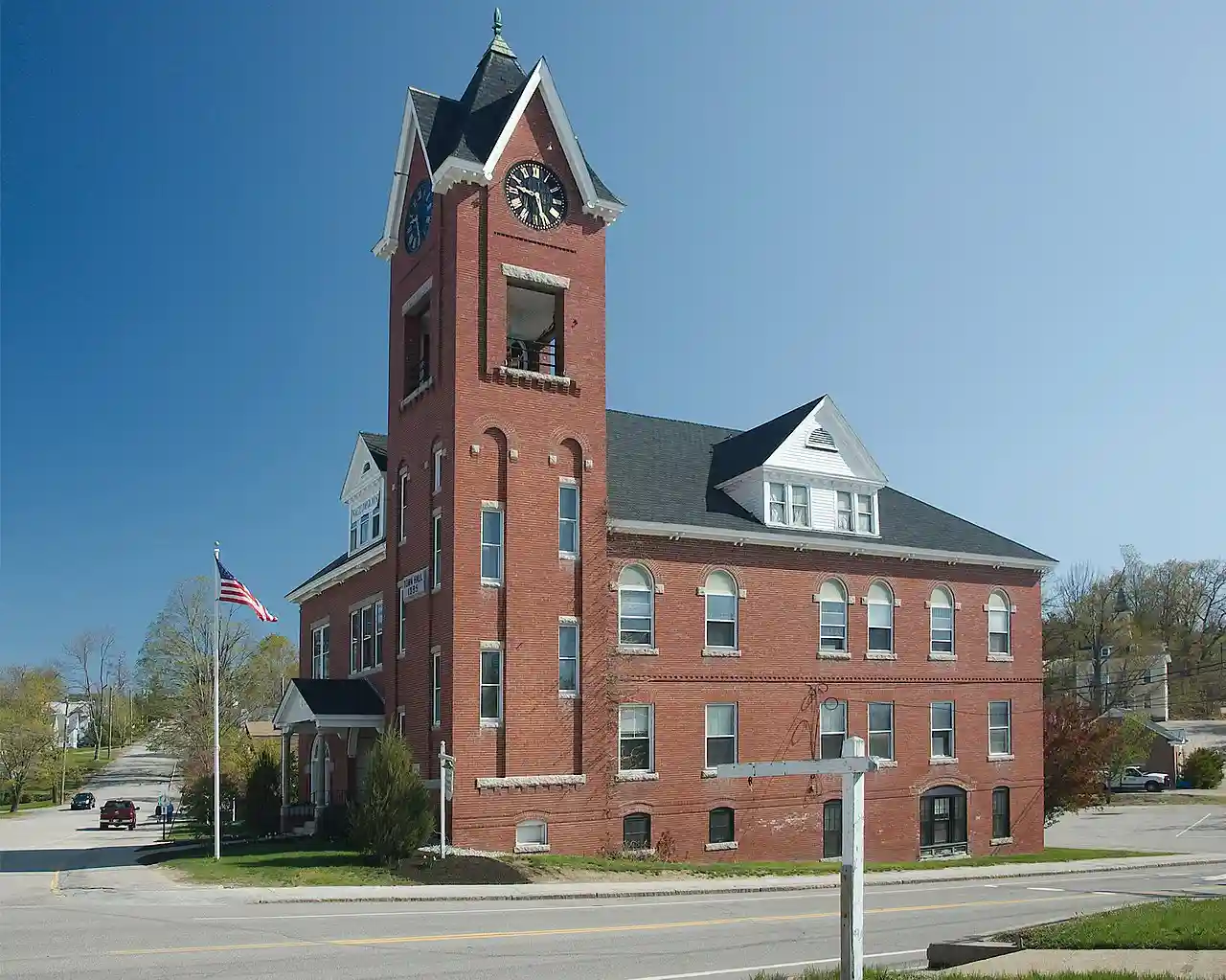 The Wakefield Town Hall and Opera House is a historic municipal building at 2 High Street in the Sanbornville village of Wakefield, New Hampshire. Built in 1895, it is a prominent local example of Romanesque architecture, and has housed civic and social activities since its construction. The building was listed on the National Register of Historic Places in 2007, and the New Hampshire State Register of Historic Places in 2002. Read more on Wikipedia