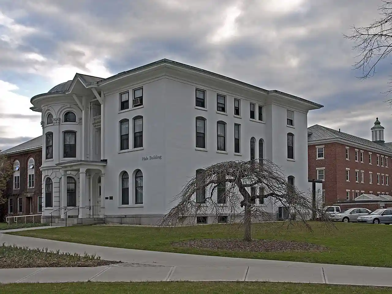 The Dinsmoor–Hale House is a historic house at the southwest corner of Main and Winchester Streets in Keene, New Hampshire. It was built in 1860 for Samuel Dinsmoor, Jr., a lawyer and former Governor of New Hampshire, and was later owned by Governor Samuel W. Hale, who made lavish alterations to its interior. It was acquired by what is now Keene State College in 1909. It now houses the office of the college president. The house was listed on the National Register of Historic Places in 1976. Read more on Wikipedia