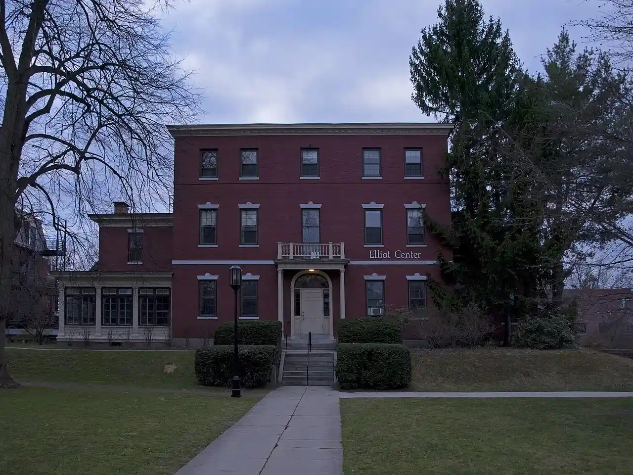 The Elliot Mansion (now Elliot Hall or the Elliot Center and formerly the Elliot Community Hospital and the Elliot City Hospital) is a historic house at 229 Main Street in Keene, New Hampshire. Built about 1810, it was said to be the finest house in town at the time of its completion, and it remains a high quality example of Federal period architecture. The house was listed on the National Register of Historic Places in 1976. It now houses facilities of Keene State College. Read more on Wikipedia