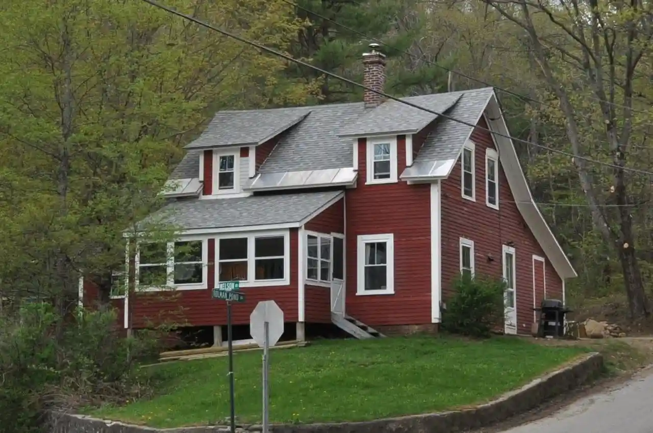 The George Cheever Farm is a historic farmstead at the corner of Nelson and Tolman Pond Roads in Harrisville, New Hampshire. This 1½-story wood-frame house was built in the early 1860s, and is a well-preserved example of a period farmhouse. It is architecturally distinctive because of a rear saltbox style addition, and its shed-roof dormers. The house was listed on the National Register of Historic Places in 1988. Read more on Wikipedia