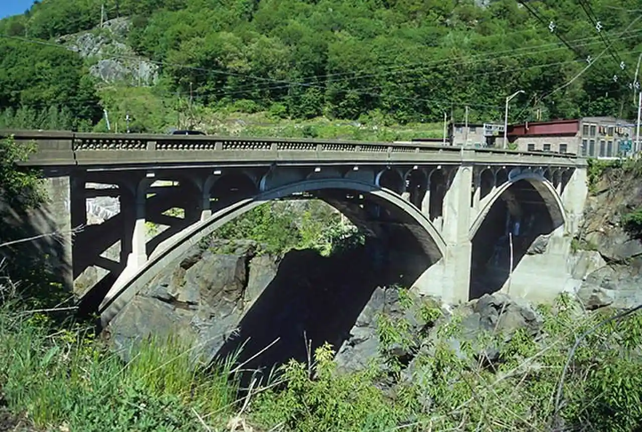 The Charles N. Vilas Bridge is a two-span concrete deck arch bridge over the Connecticut River between Bellows Falls, Vermont, and North Walpole, New Hampshire. It was built in 1930 and has been closed since March 19, 2009. The state of New Hampshire has budgeted funds to repair the bridge, with work scheduled to begin in 2028. Read more on Wikipedia