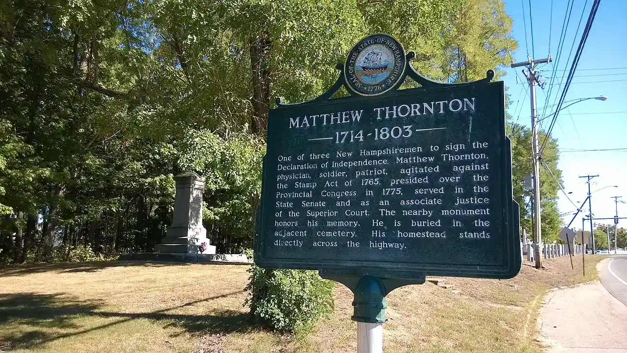 The Signer's House and Matthew Thornton Cemetery are a pair of historic properties in Merrimack, New Hampshire, United States. It consists of a house, once owned by Matthew Thornton, a signer of the United States Declaration of Independence, and the adjacent cemetery in which he is buried. The house is a two-story Georgian style double house, and is the only surviving house of the period in Merrimack. It was owned by Thornton from 1780 to 1797, when he sold it to his son James. The cemetery, located across the Daniel Webster Highway from the house, is also Merrimack's first cemetery, with the oldest gravestone marked 1742. Read more on Wikipedia
