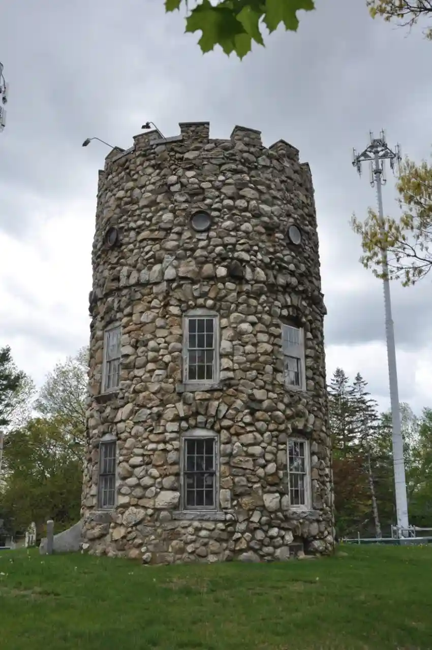 The Smyth Tower is a folly located on the grounds of the Manchester VA Medical Center at 718 Smyth Road in Manchester, New Hampshire. The fieldstone tower was built in 1888 by Frederick Smyth, and is the only surviving architectural structure related to his life. Smyth served as Governor of New Hampshire in 1865-67, and was an active promoter of veterans' issues in the post-Civil War period. The tower was listed on the National Register of Historic Places in 1978. Read more on Wikipedia