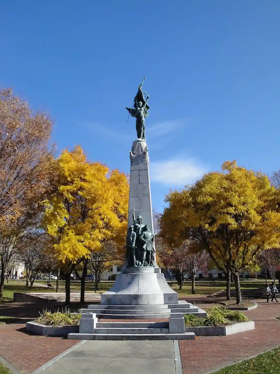 The Victory Park Historic District of Manchester, New Hampshire, encompasses Victory Park, a city park laid out in 1838, and four buildings that face it across adjacent streets. Originally called Concord Square, Victory Park was laid out by the proprietors of the Amoskeag Manufacturing Company who founded Manchester, and was first used as a common area, used by abutters for gardening and grazing. The park was sold by the proprietors to the city for $1 in 1848, conditioned on making alterations that would transform it into a park. The city did not immediately act on the required conditions, but it had by the 1870s become more parklike, with a fountain and thickly-planted trees. The park was renamed after the First World War; its most prominent feature is the Winged Victory Monument to the city's soldiers in that war, designed by Lucien Hippolyte Gosselin and erected in 1929. The park underwent a major rehabilitation in 1988. Read more on Wikipedia