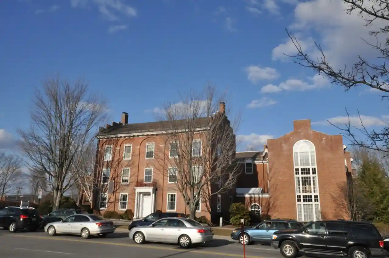 The Merrimack County Bank building is a historic commercial building at 214 North Main Street in Concord, New Hampshire. The three-story brick Federal style building was built in 1826 to house the offices of the Merrimack County Bank on the first floor, law offices on the second floor, and a public meeting space above. In 1840, the upper floor was taken over by the New Hampshire Historical Society for use as a library. The Society significantly altered the interior in the early 20th century to convert this space for display purposes. In 1952 the building was acquired by the Christian Mutual Life Insurance Company, which restored the interior to its original Federal appearance, and sold the building to a law firm in the 1970s. The building also housed the law offices of future president Franklin Pierce. Read more on Wikipedia