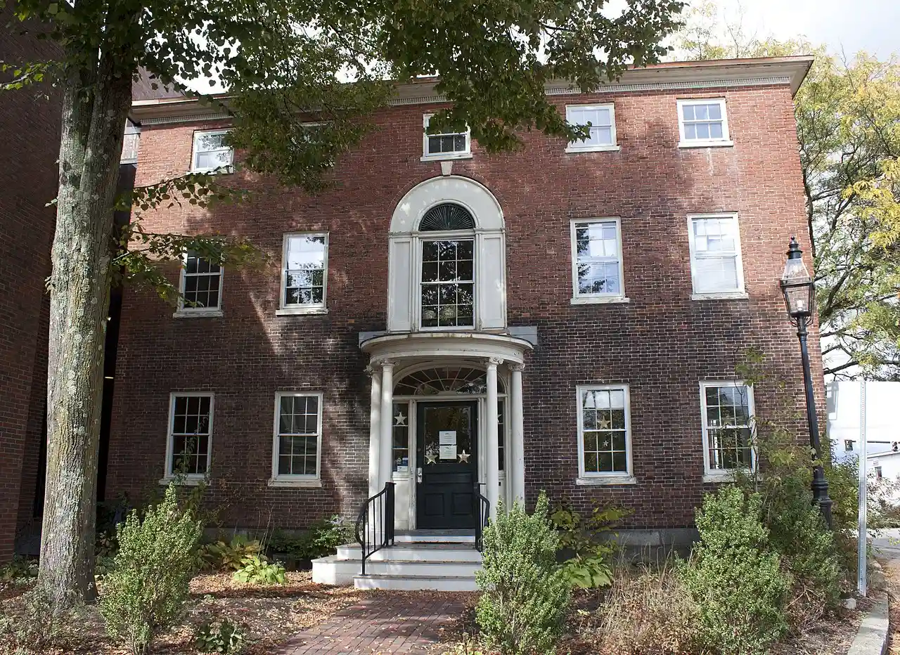 The Benedict House, also known as the Thomas Penhallow House, is a historic house at 30 Middle Street in Portsmouth, New Hampshire. Built in 1810–1813, it is a fine example of Federal style architecture, and may be an early work of the noted local builder Jonathan Folsom. The house was joined in 1954 to the adjacent Portsmouth Academy building when it housed the city's public library; this complex is now home to Discover Portsmouth, a local tourism promotion organization. It was listed on the National Register of Historic Places in 1973. Read more on Wikipedia