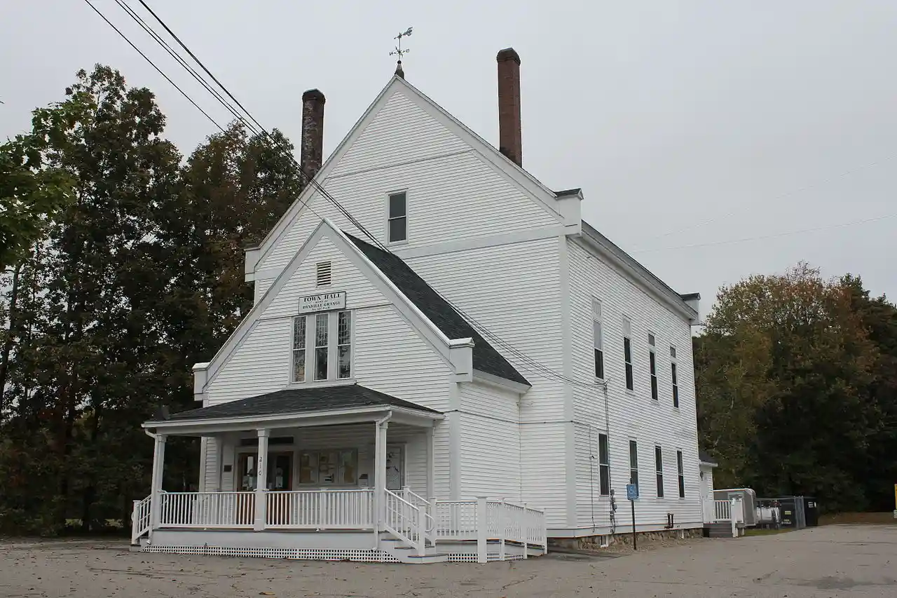 The Danville Town House is the town hall of Danville, New Hampshire. It is located at 210 Main Street (New Hampshire Route 111A). The -story wood-frame building was completed in 1887, replacing the old 18th-century meetinghouse. It houses the town offices, and a meeting space in which town meetings and other civic and social events take place. The building was listed on the National Register of Historic Places in 2000. Read more on Wikipedia