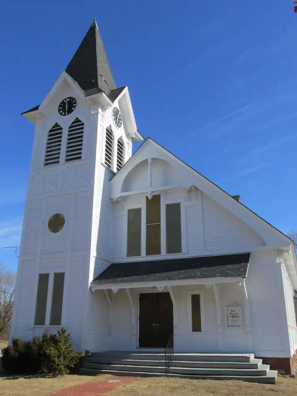 The First Universalist Church, known locally as the Church on the Plains, is a historic church building on Main Street in Kingston, New Hampshire. Built in 1879 to a design by the regionally prominent architect C. Willis Damon, it is a fine local example of Stick/Eastlake architecture. It was listed on the National Register of Historic Places in 1979, and is now owned by the local historical society. Read more on Wikipedia
