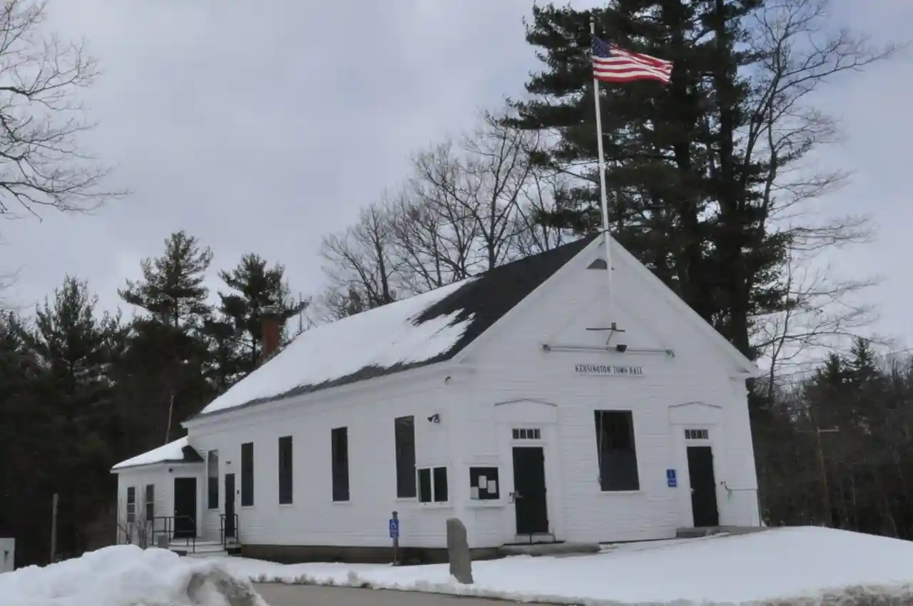 The Kensington Town House is the town hall of Kensington, New Hampshire. Located at 95 Amesbury Road (New Hampshire Route 150), the single-story wood-frame building was erected in 1846, and has been its only purpose-built municipal hall. It is a good local example of civic Greek Revival architecture, and its hall has historically hosted town meetings and social functions. The building was listed on the National Register of Historic Places in 2013. Read more on Wikipedia