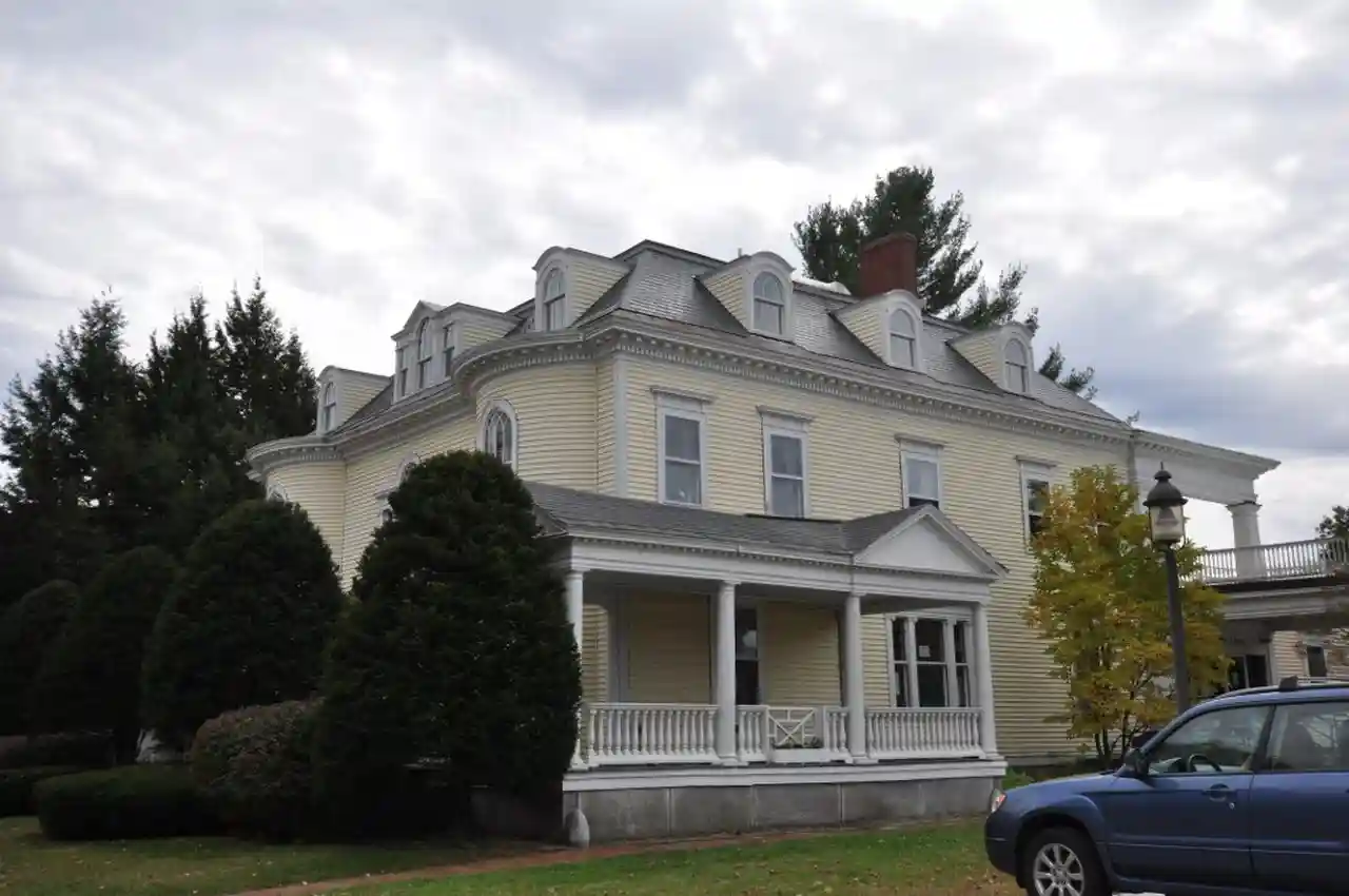 The Seth Mason Richards House, housing the Richards Free Library and the Library Arts Center, is a historic house, public library, and art gallery at 58 North Main Street in Newport, New Hampshire. This three-story Colonial Revival house was designed by Boston, Massachusetts architect James T. Kelley and built in 1898-99 for Captain Seth Mason Richards, a scion of one of Newport's wealthiest families. The property, including the house and carriage house, were donated by his heirs for use as the town's public library in 1962. The library is housed in the main building, while the carriage house has been converted for use as a gallery space. The property was listed on the National Register of Historic Places (as "Richards Free Library") in 1984. Read more on Wikipedia