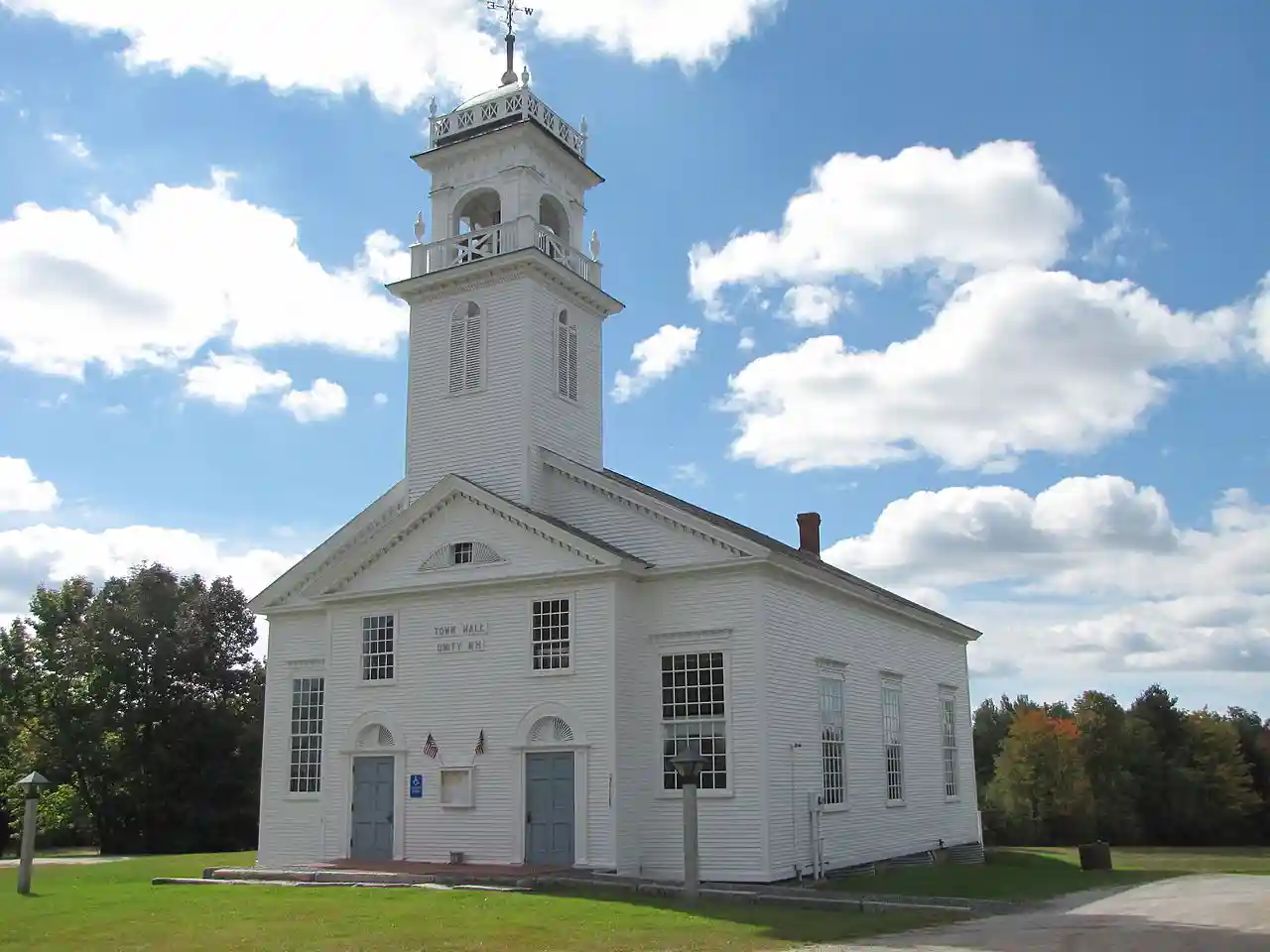 Unity Town Hall is the town hall of Unity, New Hampshire. It is located in the center of Unity, on the 2nd New Hampshire Turnpike just north of its junction with Center Road. Built in 1831 as a Baptist church, it is a well-preserved example of transitional Federal-Greek Revival styling. The building was listed on the National Register of Historic Places in 1985. Read more on Wikipedia