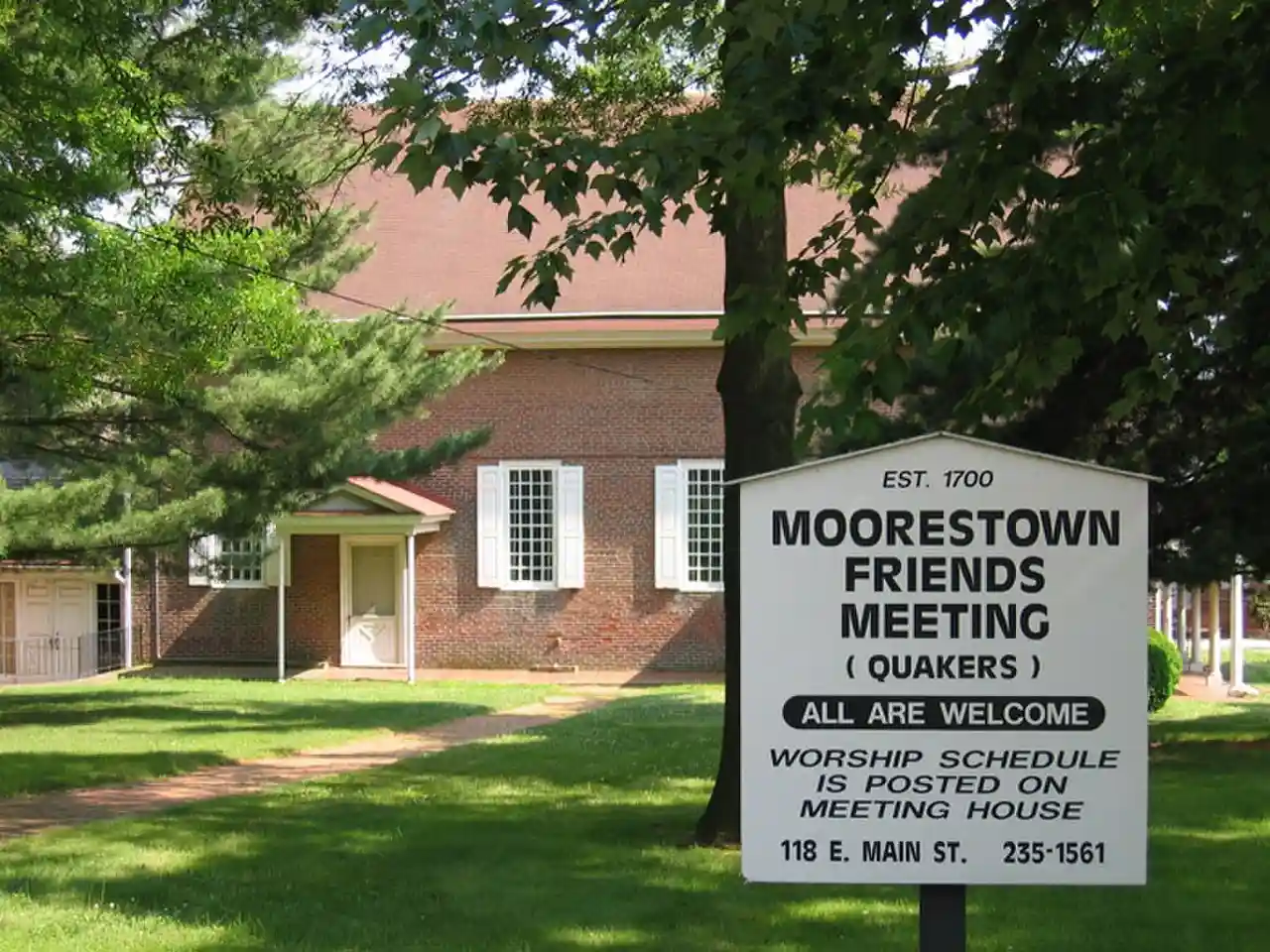 Moorestown Friends School and Meetinghouse is a historic Quaker school and meetinghouse on Main Street at Chester Avenue in Moorestown Township, Burlington County, New Jersey, United States. The Friends Meeting hosts Quaker worship every Sunday in the meetinghouse, as well as a variety of events, including Christmas Eve meetings for worship and youth activities. Read more on Wikipedia