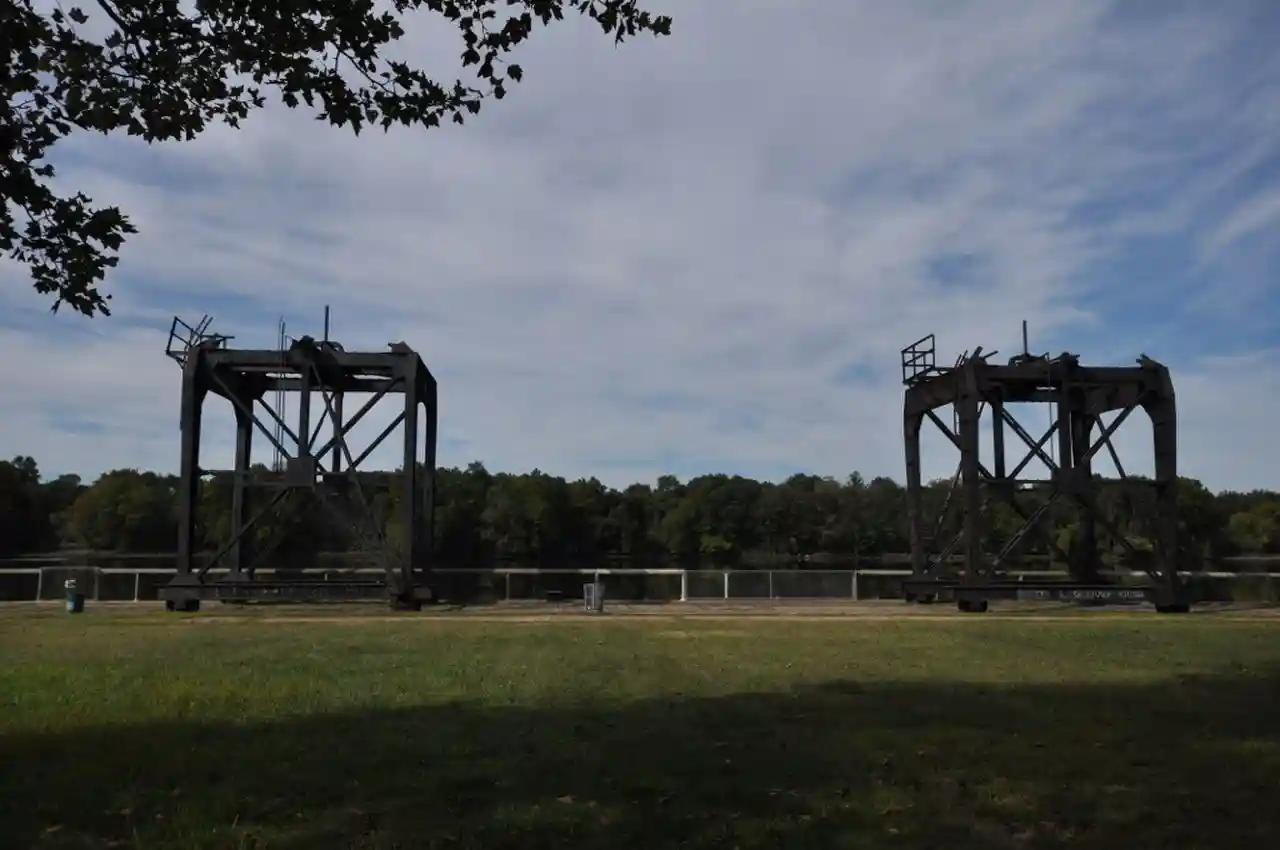 The Hog Island Cranes, located in Trenton, New Jersey, are two of 28 locomotive steam gantry cranes built in 1917 by the McMyler-Interstate Company of Cleveland, Ohio, for the Hog Island, Philadelphia, shipyard. They helped produce warships during World War I, are representative of an important era of heavy lifting equipment, and played an important role in 20th-century waterfront technology. They were added to the National Register of Historic Places on June 17, 1980, for their significance in commerce, engineering, industry, and transportation. With Read more on Wikipedia