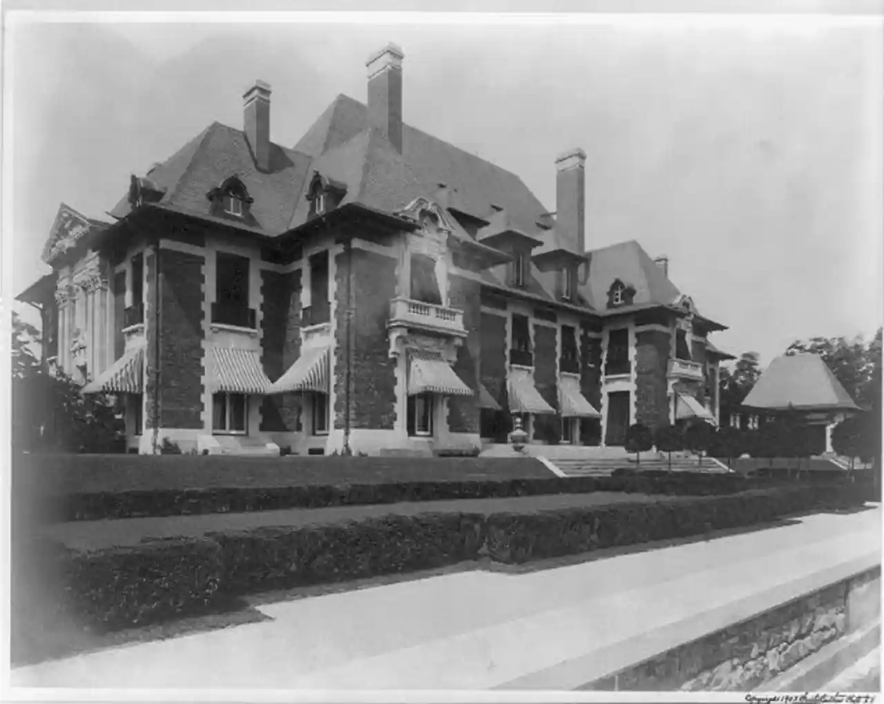 Blairsden is a historic , 38-room mansion located in Peapack-Gladstone, New Jersey. Set high on a hilltop overlooking Ravine Lake, the mansion is part of what was originally an estate of . In addition to its 38 rooms, the mansion has 25 fireplaces and 19 bathrooms. Read more on Wikipedia