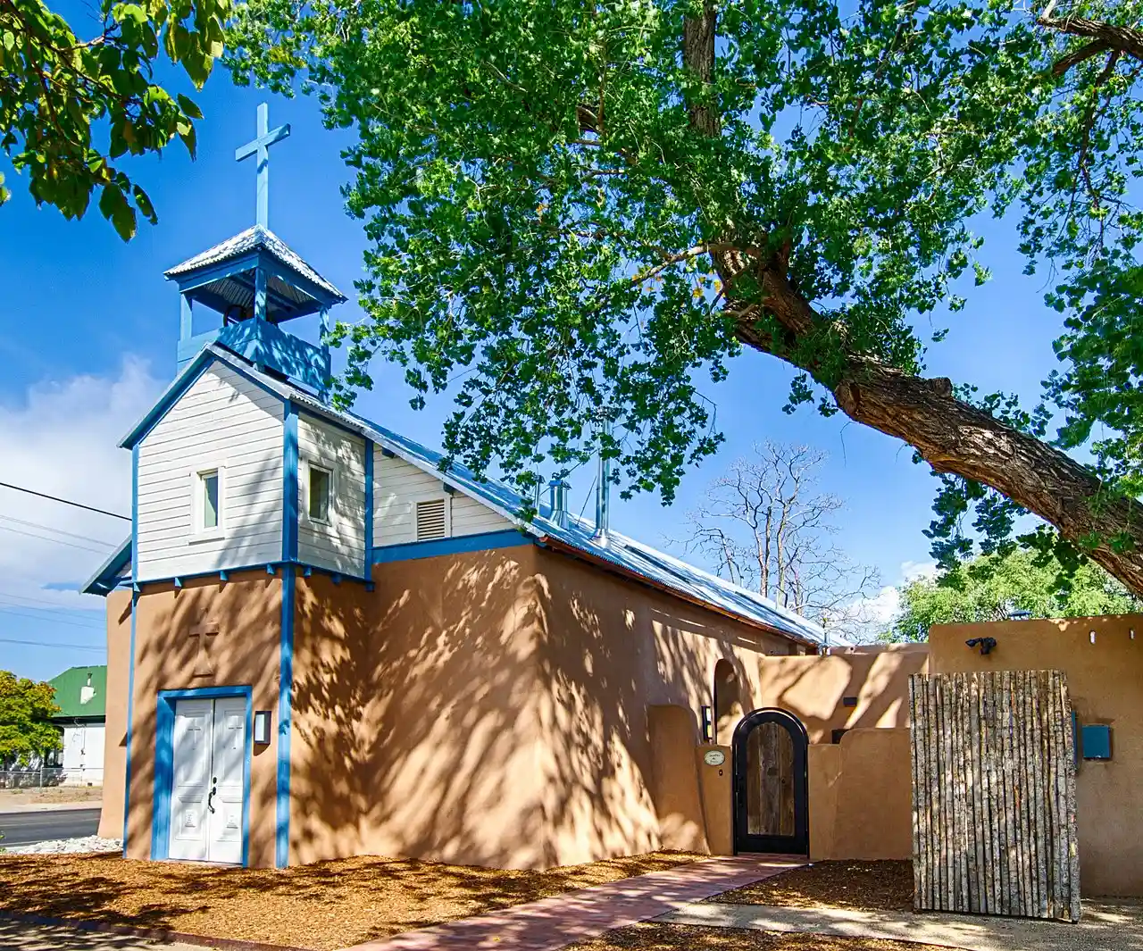 The Los Candelarias Chapel, also known as the San Antonio Chapel, is a historic building in Albuquerque, New Mexico. The chapel was built in 1888 to serve the community of Los Candelarias, one of several outlying plazas spread along the Rio Grande in the vicinity of the main plaza at Old Town Albuquerque. It is one of the only surviving buildings from the no-longer-extant plaza. The building remained in use as a chapel until the 1950s and was subsequently converted into an artist's studio and then a private residence. With . It was listed on the New Mexico State Register of Cultural Properties in 1983 and the National Register of Historic Places in 1984. Read more on Wikipedia