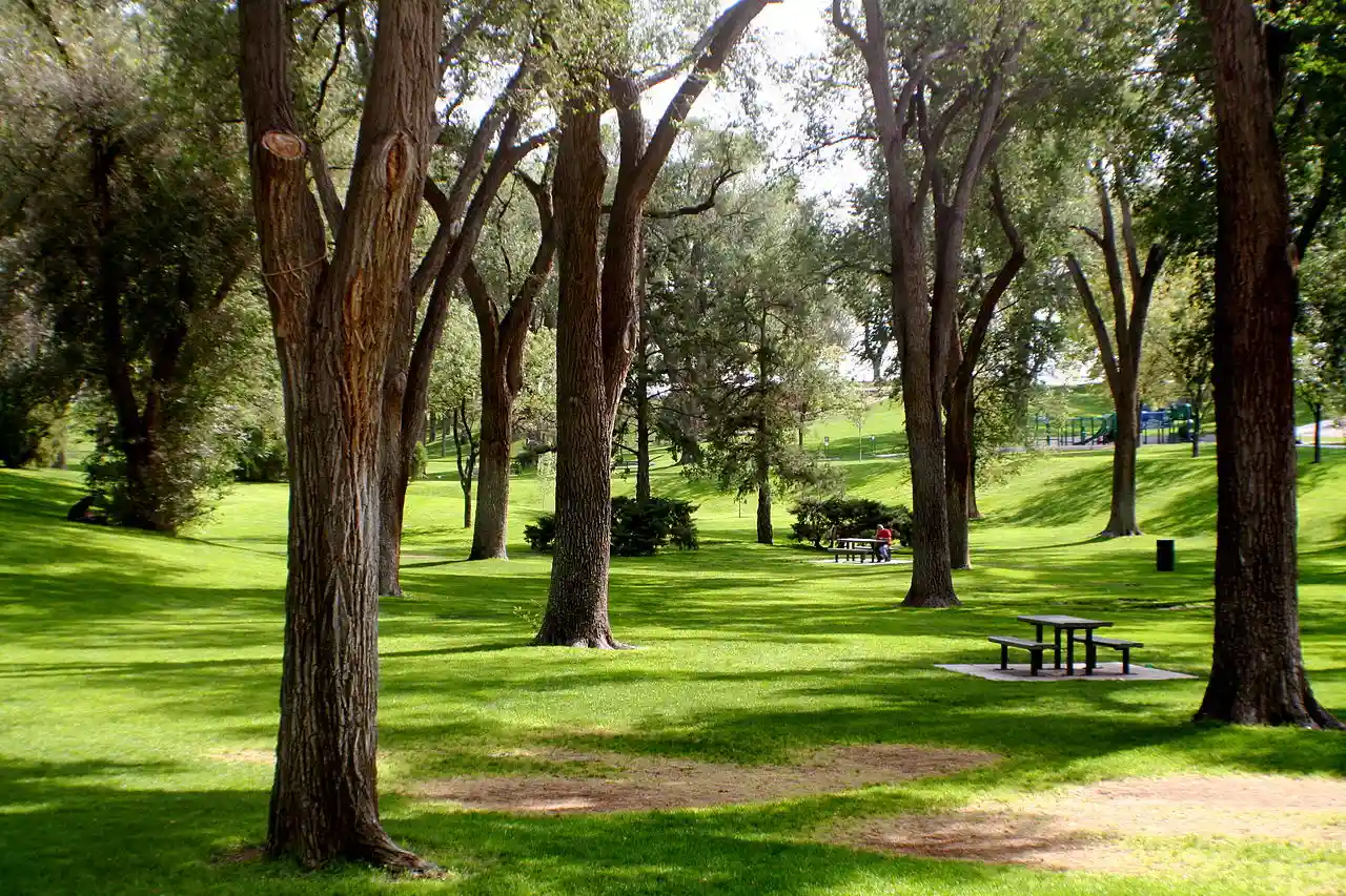 Roosevelt Park is a historic park in Albuquerque, New Mexico. It is listed on the New Mexico State Register of Cultural Properties and the National Register of Historic Places, and is a protected Albuquerque Historic Landmark. The park was built between 1933 and 1935 by manual laborers employed by President Franklin D. Roosevelt's New Deal programs, turning a sandy arroyo filled with garbage into a rolling, grassy landscape planted with over 2,000 trees and bushes. It has long been one of the city's most popular gathering and recreation areas, although it also developed a reputation as a dangerous area beginning in the 1960s. The park received a major renovation in 2006–7. Read more on Wikipedia