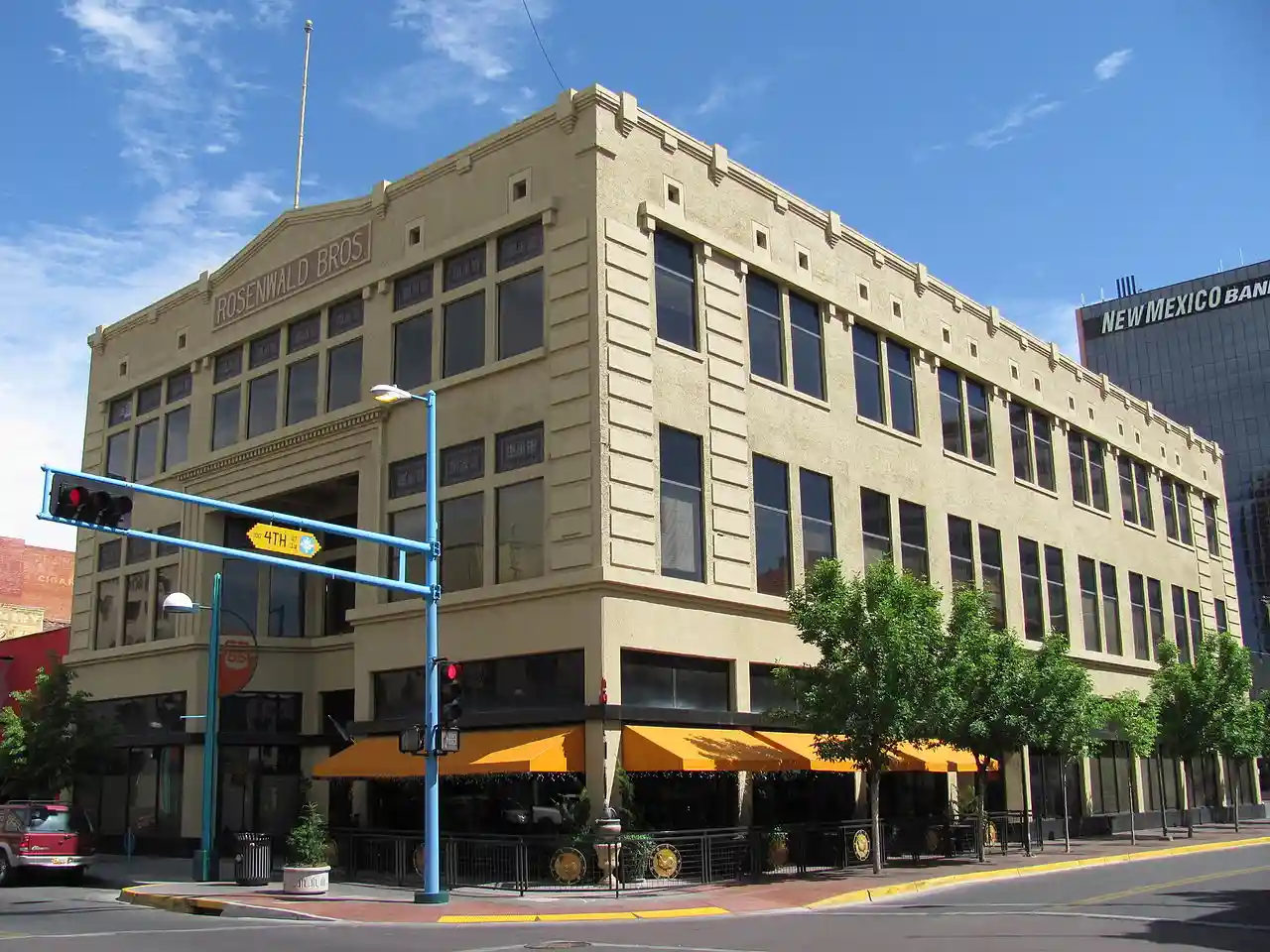 The Rosenwald Building is a historic building located in Downtown Albuquerque, New Mexico. Designed by Henry Trost of the El Paso firm of Trost & Trost and built in 1910, it was the first reinforced concrete building in the city. It is a massive three-story building with a two-story recessed entrance and simple geometric ornamentation. The building was added to the New Mexico State Register of Cultural Properties and the National Register of Historic Places in 1978. Read more on Wikipedia