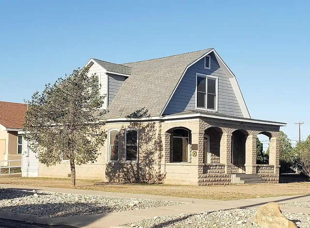 The Sallie Chisum Robert House is a historic house in Artesia, New Mexico. It was built with cast stone in 1908 for Sallie Chisum Robert, one of Artesia's co-founders whose uncle was the cattle baron John Chisum. With Born in Texas, she married a German immigrant, William Robert, only to divorce him and become a homesteader in Artesia; she later moved to Roswell, New Mexico. The house was designed in the Dutch Colonial Revival architectural style, with a gambrel roof. It was added to New Mexico's State Register of Cultural Properties in 1977. It has been listed on the National Register of Historic Places since March 2, 1984. Read more on Wikipedia