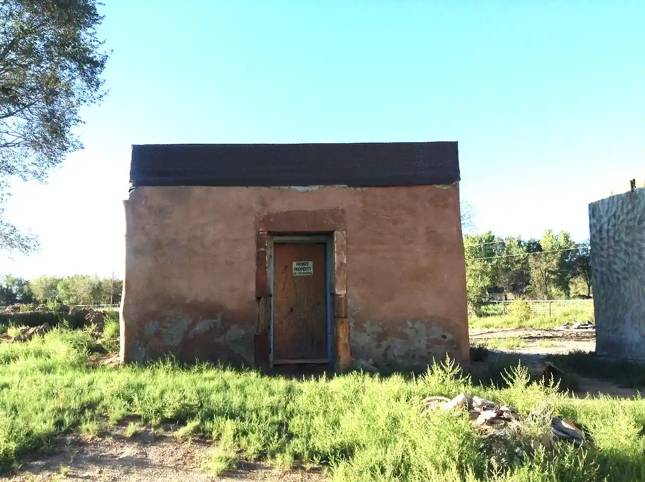 Tome Jail is a historic jail building in Tome, New Mexico. It is the only surviving part of the former Valencia County Courthouse, built when the county seat was moved from Belen to Tome in 1875. The courthouse was a two-story adobe building which gradually disappeared due to erosion, but the jail had more durable stone walls and remained standing. Construction of the building was probably authorized by Probate Judge Manuel A. Otero, who was the chief county official at the time and whose name appears in a bilingual inscription carved into the stone lintel. with Read more on Wikipedia