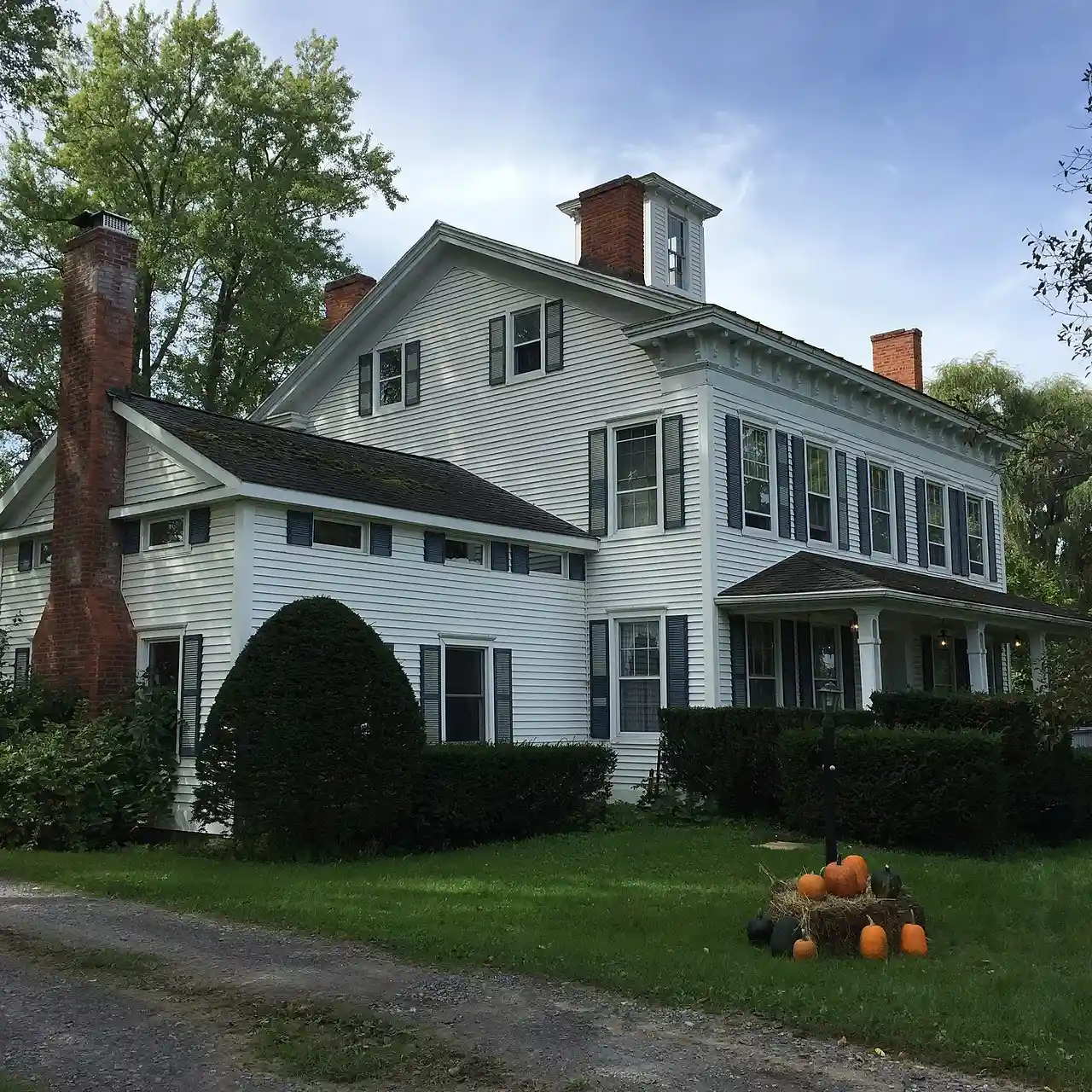 Charles Parker House is a historic home located at Guilderland in Albany County, New York. It was built in 1844 and is a large -story brick farmhouse in the Italianate style. It features a bracketed cornice, gable roof with lantern, and four symmetrically placed chimneys. Read more on Wikipedia