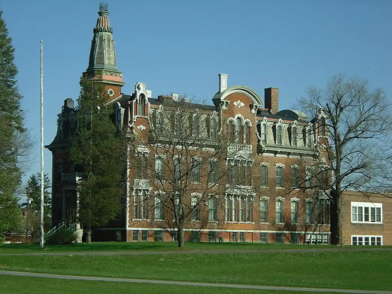 Coeymans School, also known as Acton Civill Polytechnic Institute, is a historic school building located at Coeymans in Albany County, New York. It was built in 1874 and is a rectangular brick building with a mansard roof with slate shingles. It is three stories tall, five bays wide and eleven bays deep. It features an unusual number of cast iron architectural details including the water table, quoins, window labels, balustrade, towers, and chimney. The building was originally built by Acton Civill (1804-1889) to house a polytechnic institute. In 1899, the local board of education purchased the building and used it for instructional purposes until 1963. See also: Read more on Wikipedia