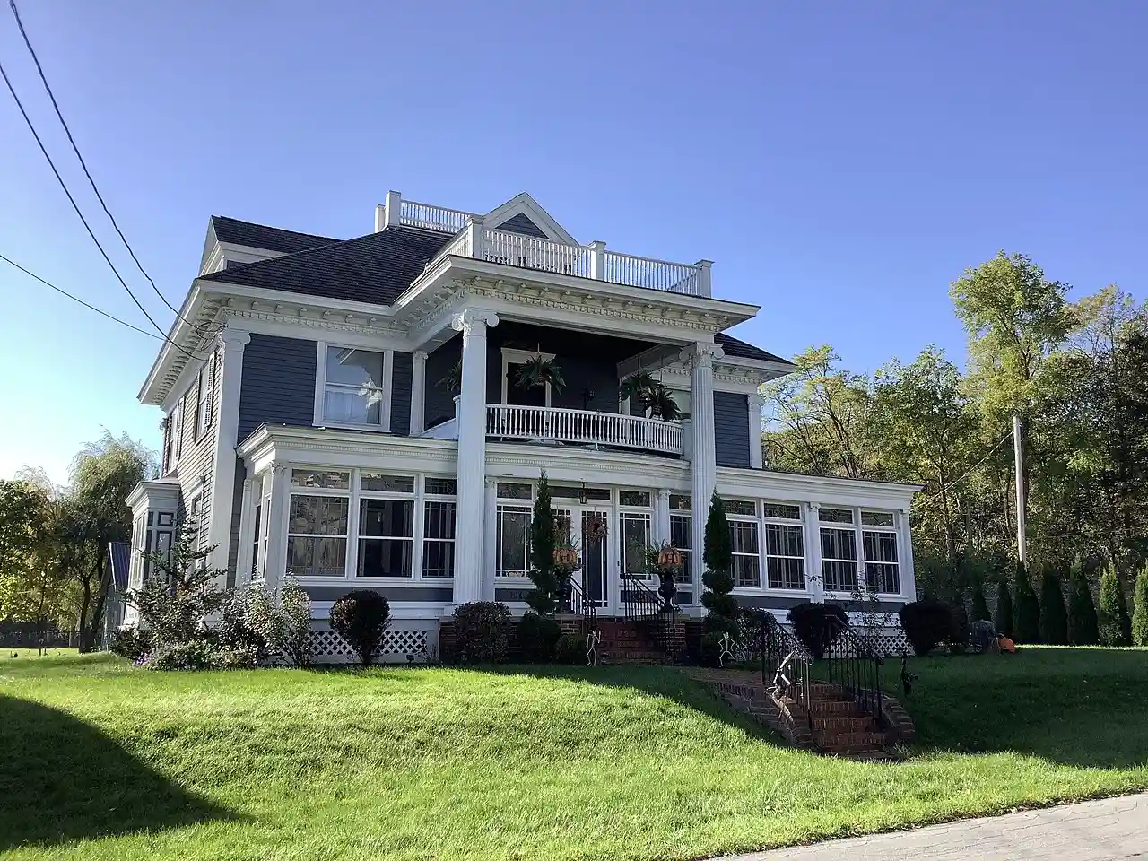 Hayes House is a historic home on Fairview Avenue in Altamont in Albany County, New York. It was built in 1910 and is a large -story, square frame dwelling on a stone foundation. The front facade features an enclosed porch on the first floor and balconies on the second and third. See also: Miles Hayes (1856-1925) commissioned plans for this classical revival house in 1912. Read more on Wikipedia