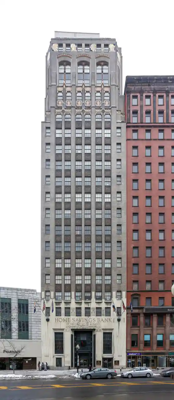 The Home Savings Bank Building is an office building located in downtown Albany, New York, United States at 11 North Pearl Street (NY 32). At 19 stories and tall, it is the eleventh-tallest building in the city. Read more on Wikipedia