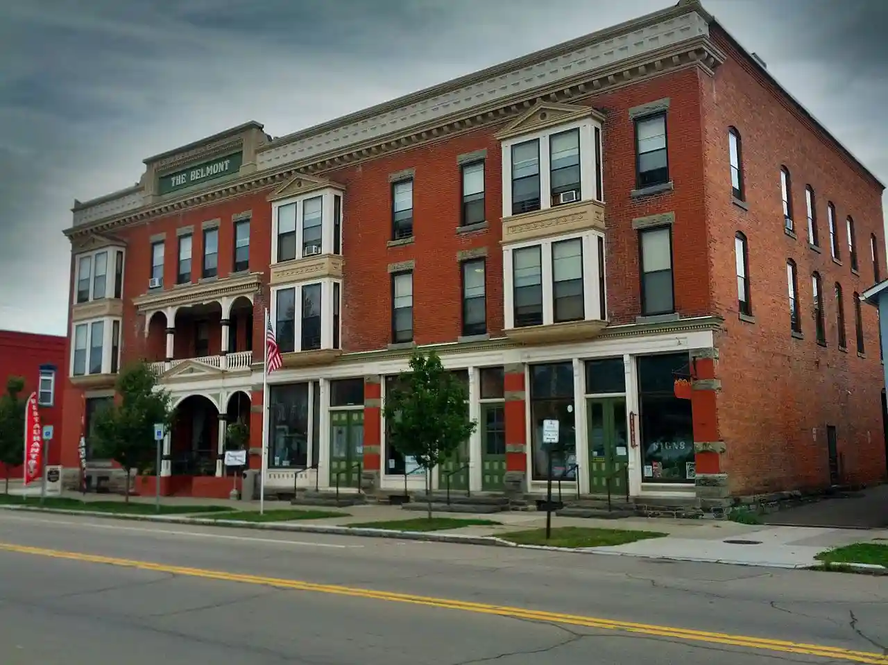 Belmont Hotel is a historic hotel building located at Belmont in Allegany County, New York. The three-story brick building was constructed in 1890 to plans by Fredonia architects Curtis & Archer. The first floor features cast iron storefronts and arcaded loggia. Located adjacent to the Allegany County Courthouse, the hotel played an important role in the county's social, business, and political affairs. See also: Read more on Wikipedia
