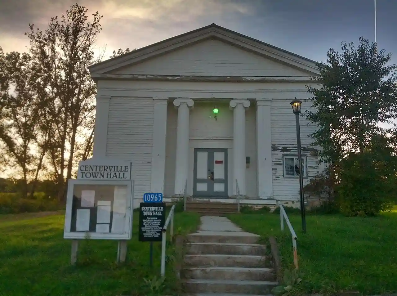 Centerville Town Hall is a historic town hall located at Centerville in Allegany County, New York. It was completed in 1859 and is a 2-story, three-by-three-bay Greek Revival style former Presbyterian church building. It has a large, 1-story horse / carriage house wing at the rear. The building was used as a Grange hall from 1909 to 1927, after which it became the town hall. See also: Read more on Wikipedia