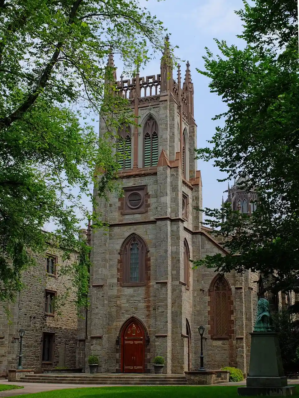The Fordham University Church is a Catholic (Jesuit) church located at Fordham University in the Bronx, New York City. Originally constructed in 1845, the church was initially used as a seminary for the community, and later became part of the university in 1859. Contemporarily, it is the central place of worship and head of the university's campus ministry, which also has various associated chapels across the university's three campuses. Read more on Wikipedia